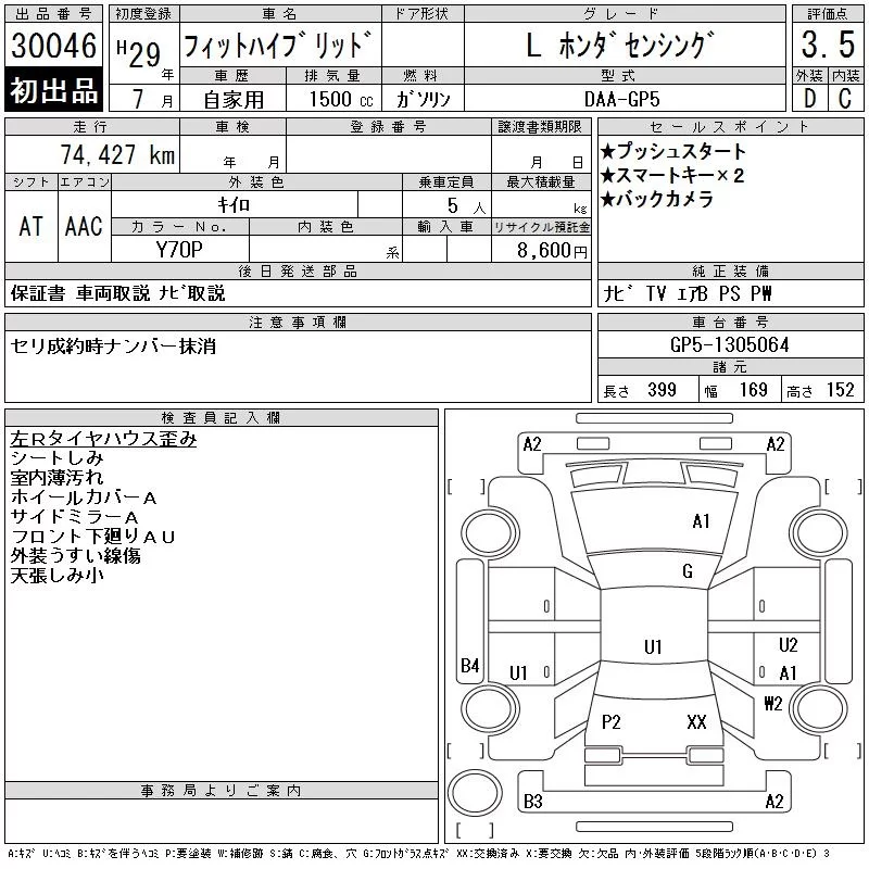 Honda FIT с аукциона Японии CAA Tokyo лот № 30046