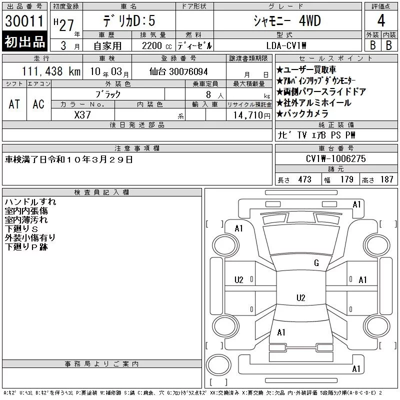 Mitsubishi DELICA D5 с аукциона Японии CAA Tokyo лот № 30011