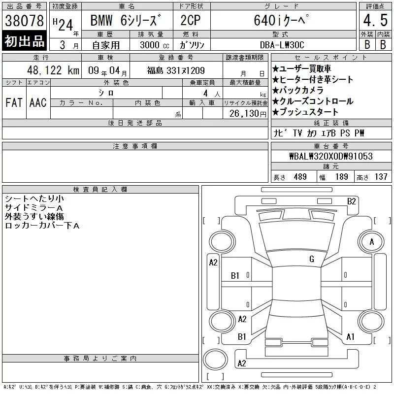 BMW 6-Series с аукциона Японии CAA Tokyo лот № 38078