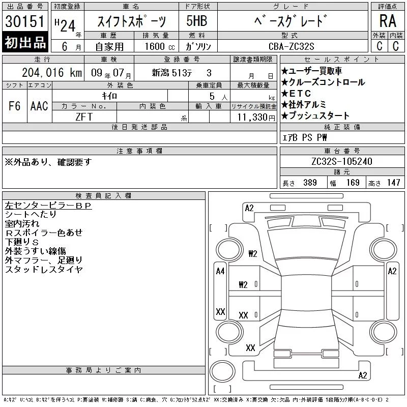 Suzuki SWIFT с аукциона Японии CAA Tokyo лот № 30151