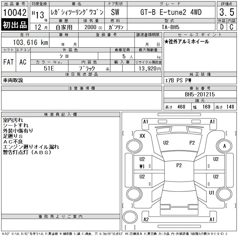 Subaru LEGACY с аукциона Японии CAA Tokyo лот № 10042