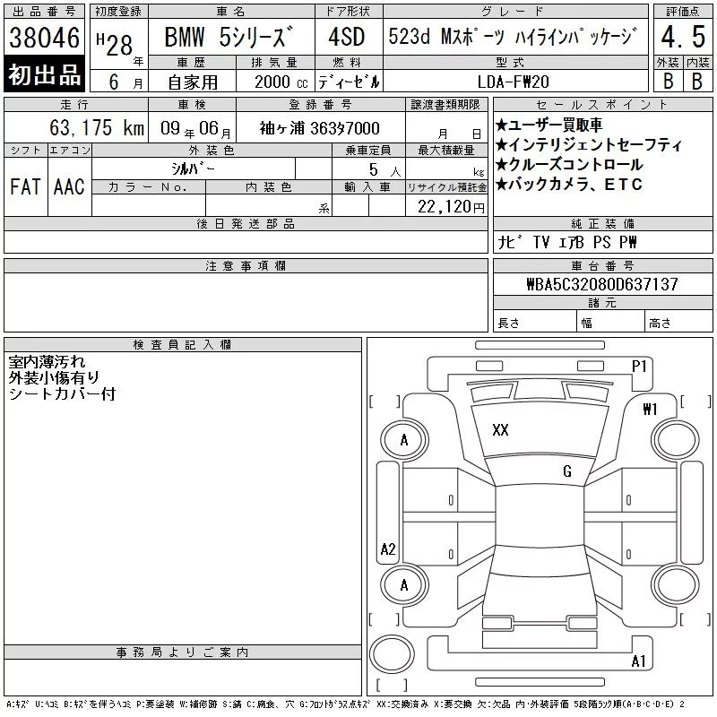 BMW 5-Series с аукциона Японии CAA Tokyo лот № 38046