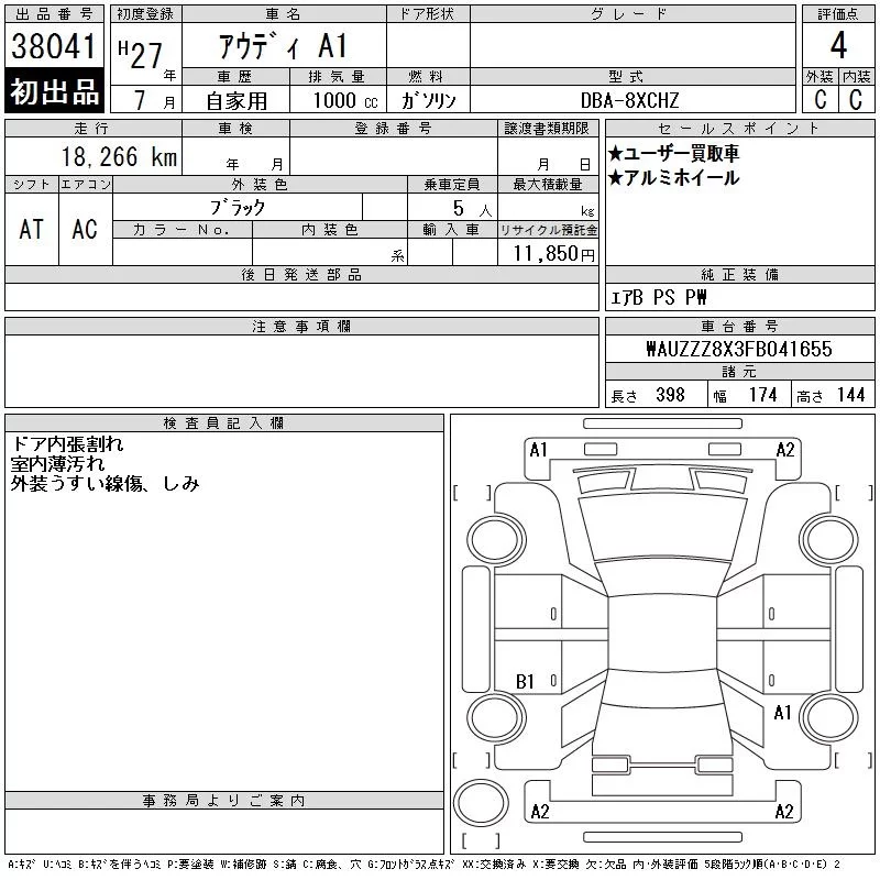 Audi A1 с аукциона Японии CAA Tokyo лот № 38041