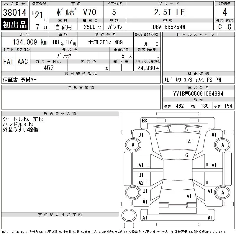 Volvo V70 с аукциона Японии CAA Tokyo лот № 38014