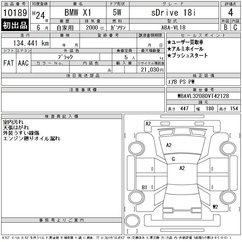 BMW X1 с аукциона Японии CAA Tokyo лот № 10189