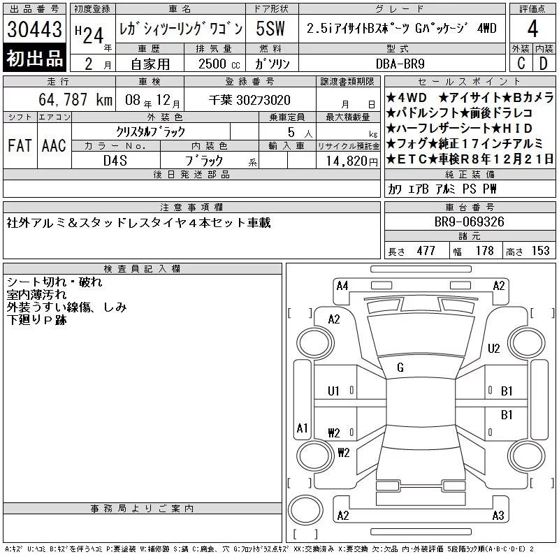 Subaru LEGACY с аукциона Японии CAA Tokyo лот № 30443