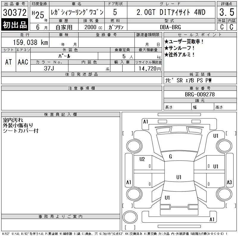 Subaru LEGACY с аукциона Японии CAA Tokyo лот № 30372
