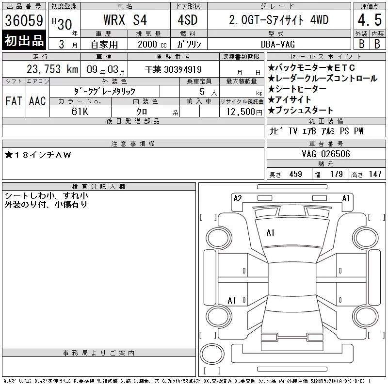 Subaru WRX с аукциона Японии CAA Tokyo лот № 36059