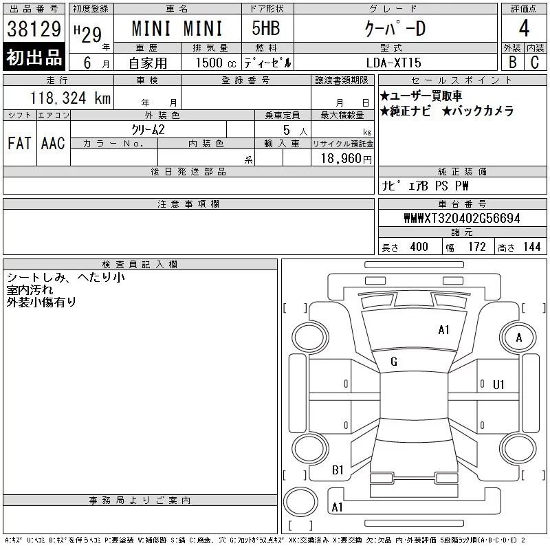 BMW MINI с аукциона Японии CAA Tokyo лот № 38129