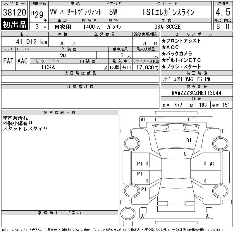 Volkswagen PASSAT VARIANT с аукциона Японии CAA Tokyo лот № 38120