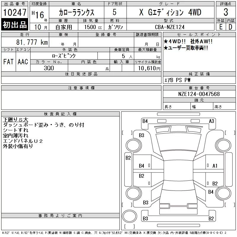 Toyota COROLLA RUNX с аукциона Японии CAA Tokyo лот № 10247