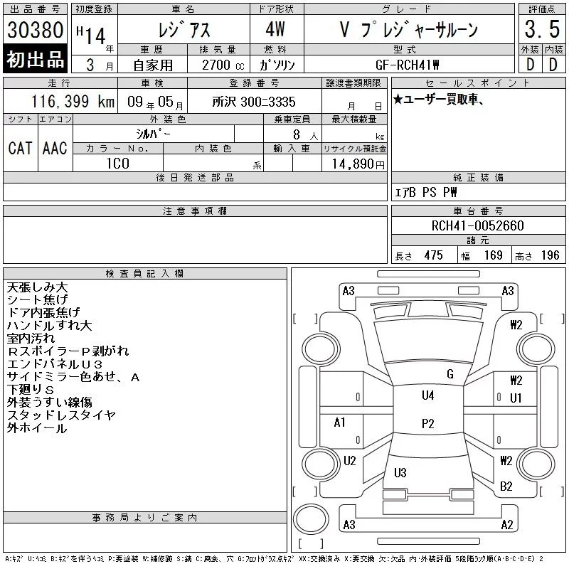 Toyota HIACE REGIUS с аукциона Японии CAA Tokyo лот № 30380