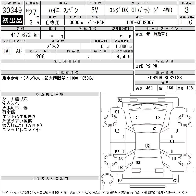 Toyota HIACE VAN с аукциона Японии CAA Tokyo лот № 30349