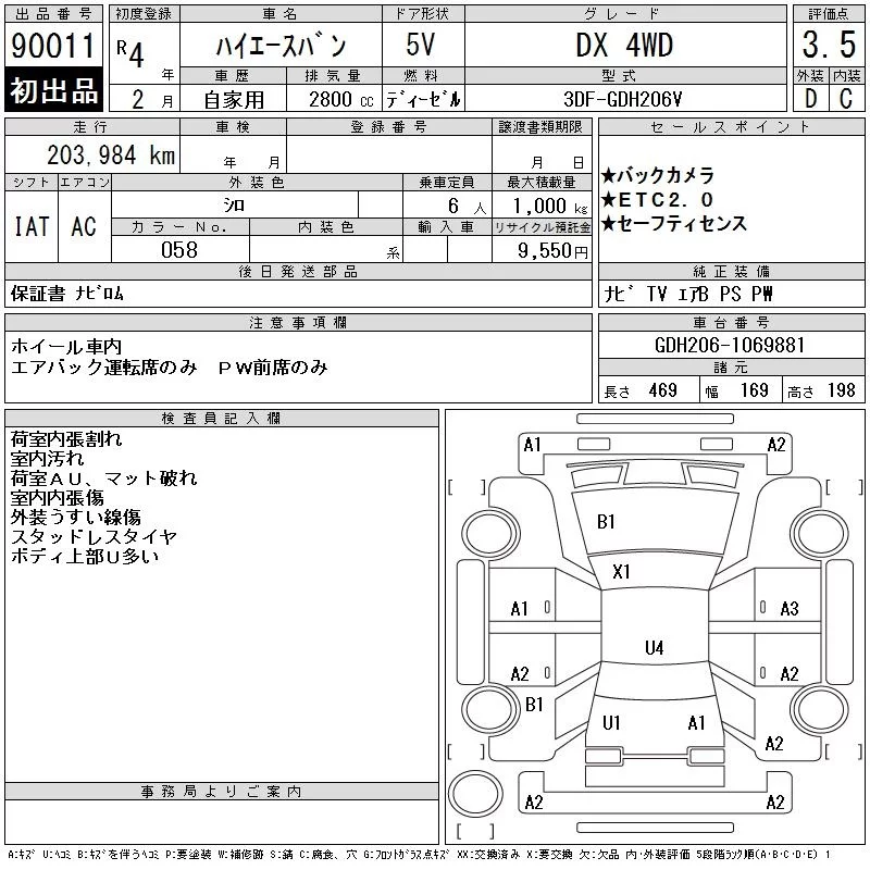Toyota HIACE VAN с аукциона Японии CAA Tokyo лот № 90011