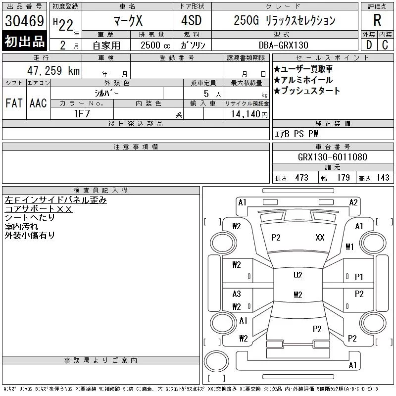 Toyota MARK X с аукциона Японии CAA Tokyo лот № 30469