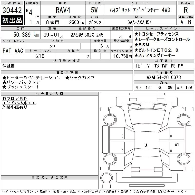 Toyota RAV4 с аукциона Японии CAA Tokyo лот № 30442