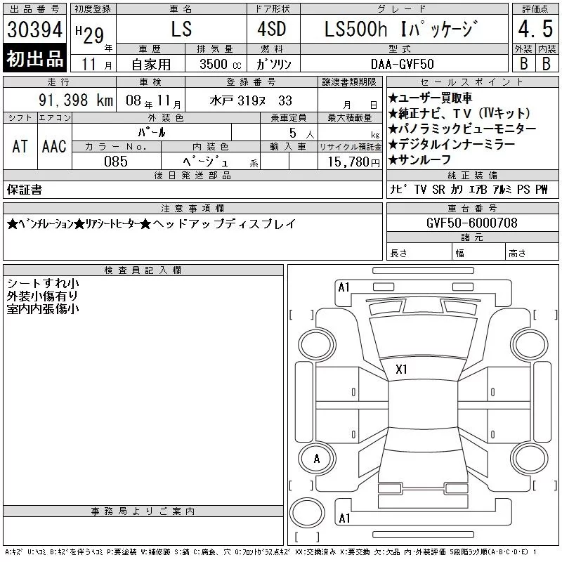 Lexus LS с аукциона Японии CAA Tokyo лот № 30394