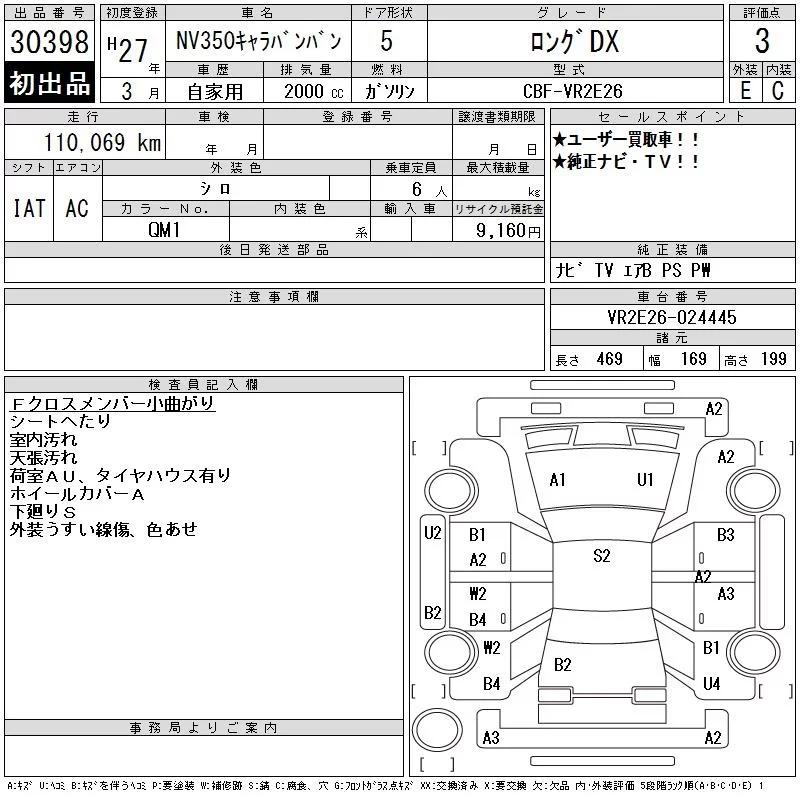 Nissan CARAVAN VAN с аукциона Японии CAA Tokyo лот № 30398