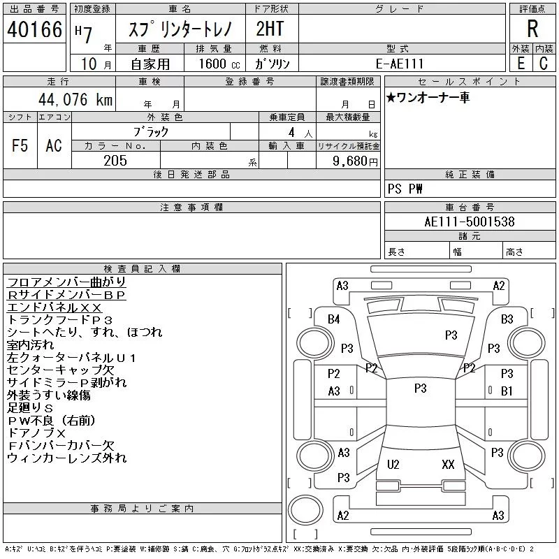 Toyota SPRINTER с аукциона Японии CAA Tokyo лот № 40166