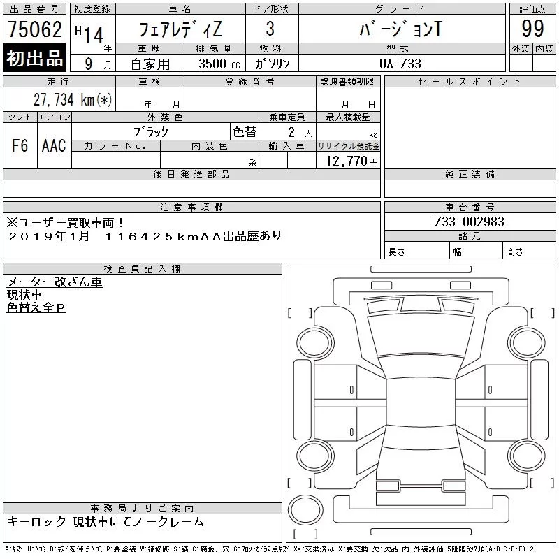 Nissan FAIRLADYZ с аукциона Японии CAA Tokyo лот № 75062