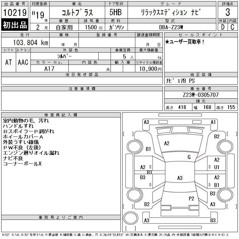 Mitsubishi COLT PLUS с аукциона Японии CAA Tokyo лот № 10219