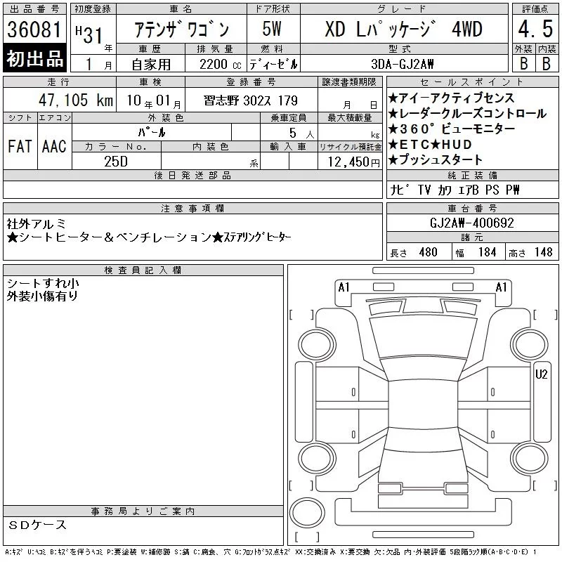 Mazda ATENZA WAGON с аукциона Японии CAA Tokyo лот № 36081