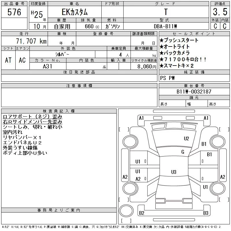 Mitsubishi EK CUSTOM с аукциона Японии CAA Tokyo лот № 576