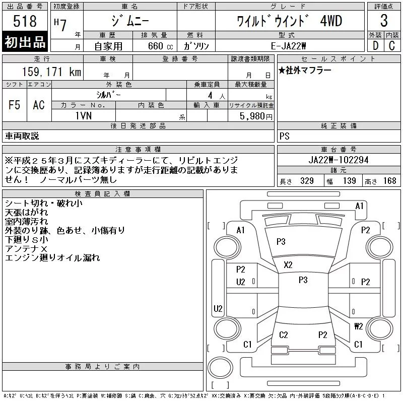 Suzuki JIMNY с аукциона Японии CAA Tokyo лот № 518