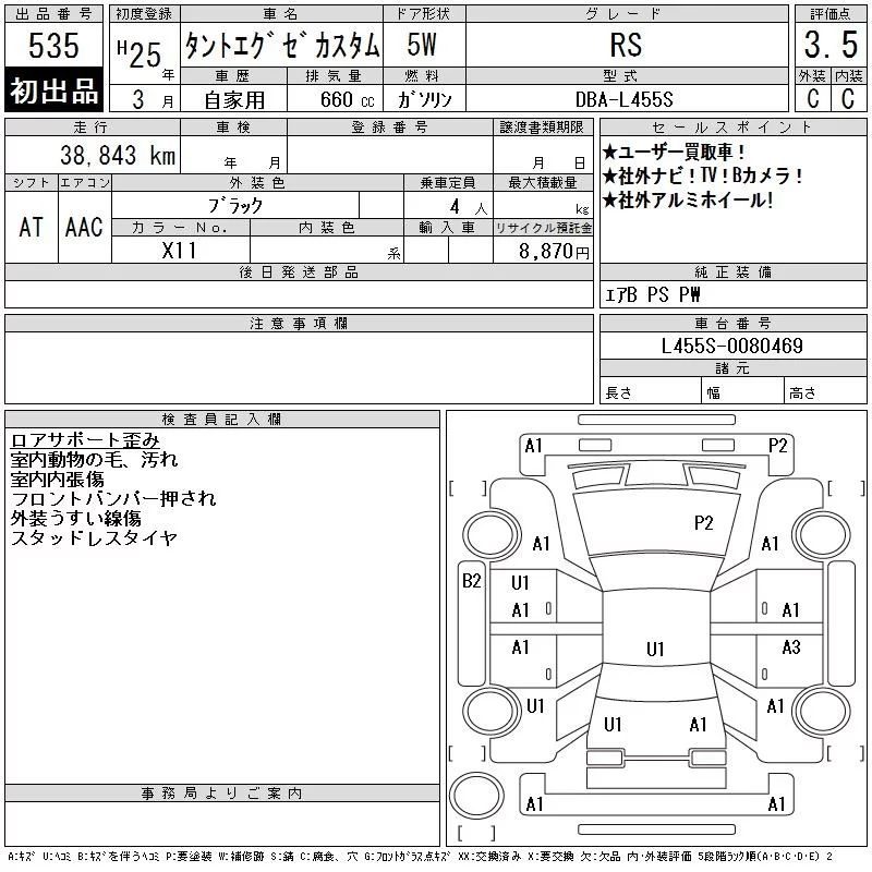 Daihatsu TANTO EXE с аукциона Японии CAA Tokyo лот № 535