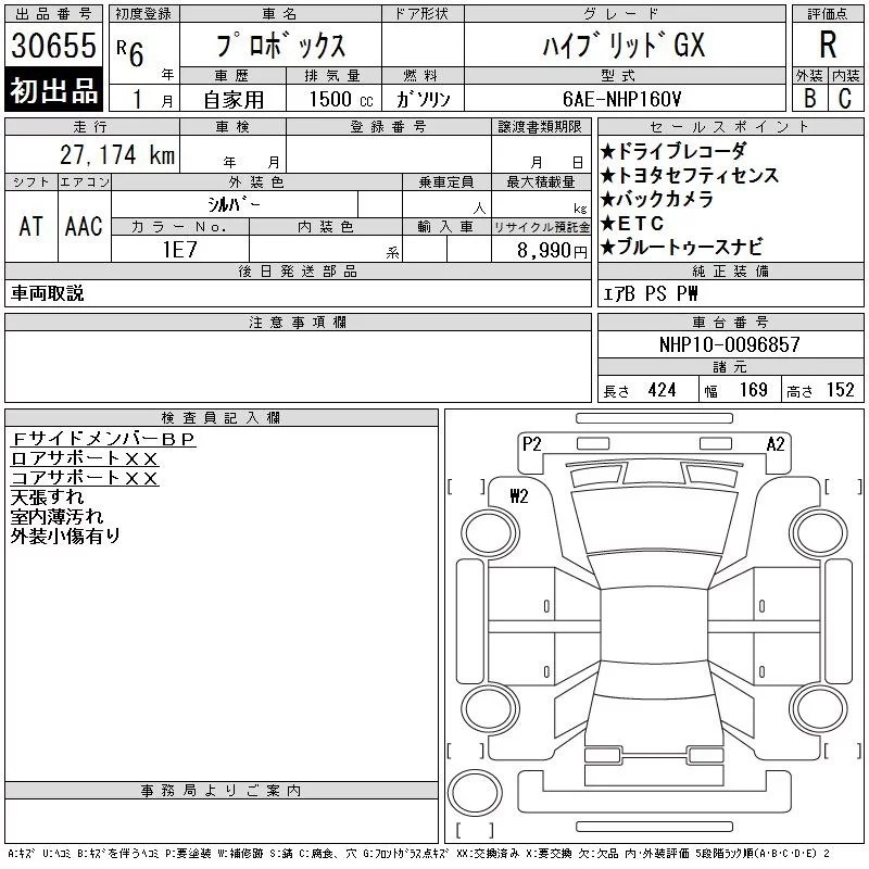Toyota PROBOX с аукциона Японии CAA Tokyo лот № 30655