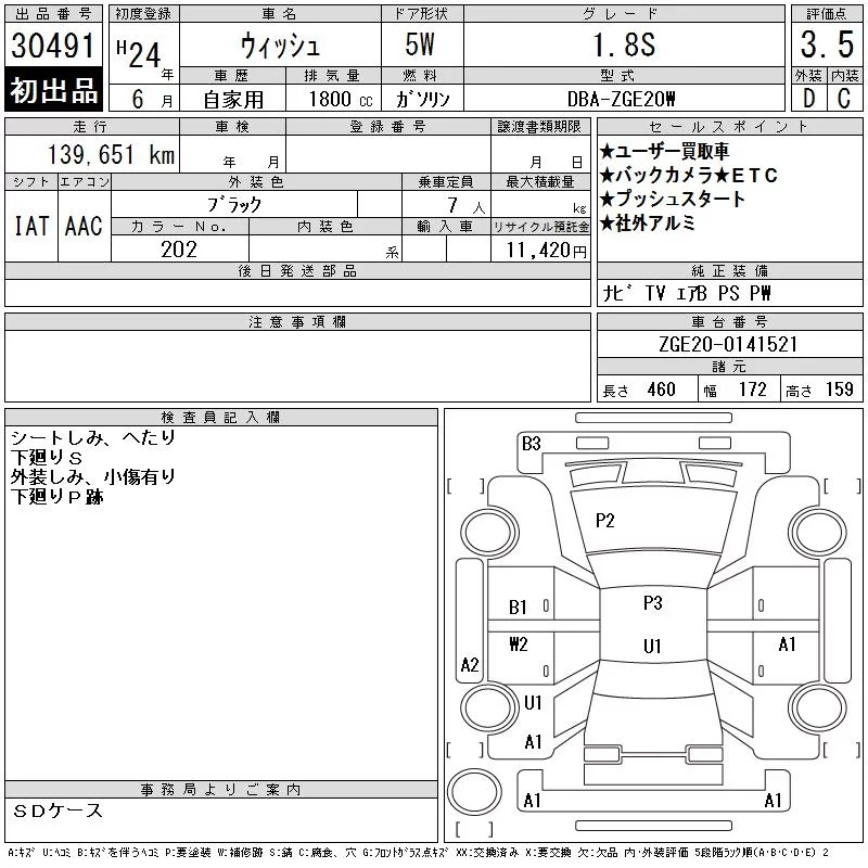 Toyota WISH с аукциона Японии CAA Tokyo лот № 30491
