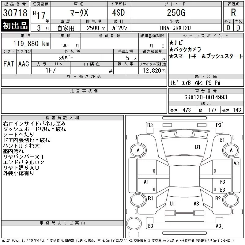 Toyota MARK X с аукциона Японии CAA Tokyo лот № 30718