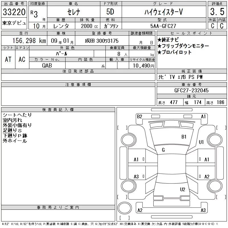 Nissan SERENA с аукциона Японии CAA Tokyo лот № 33220