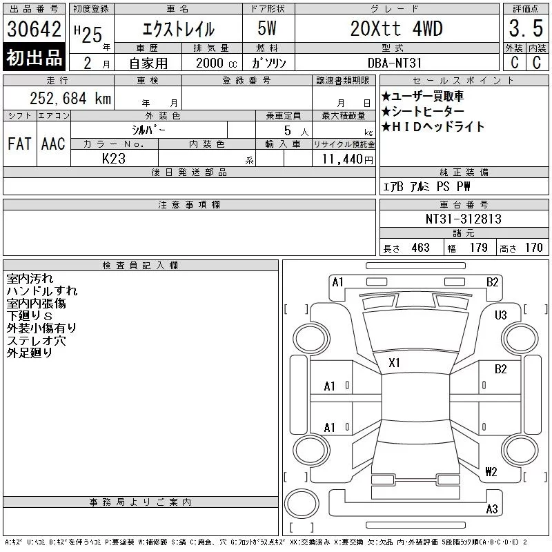 Nissan X-TRAIL с аукциона Японии CAA Tokyo лот № 30642