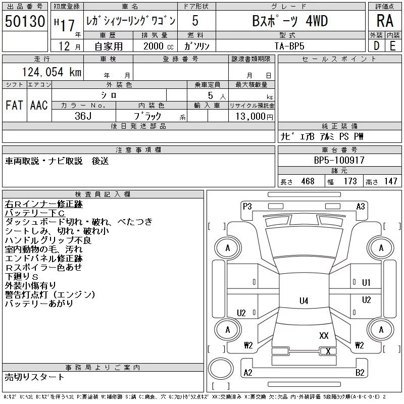 Subaru LEGACY с аукциона Японии CAA Tokyo лот № 50130