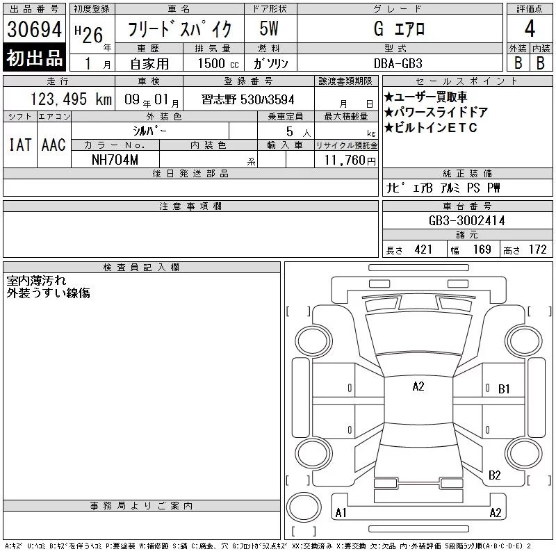 Honda FREED с аукциона Японии CAA Tokyo лот № 30694