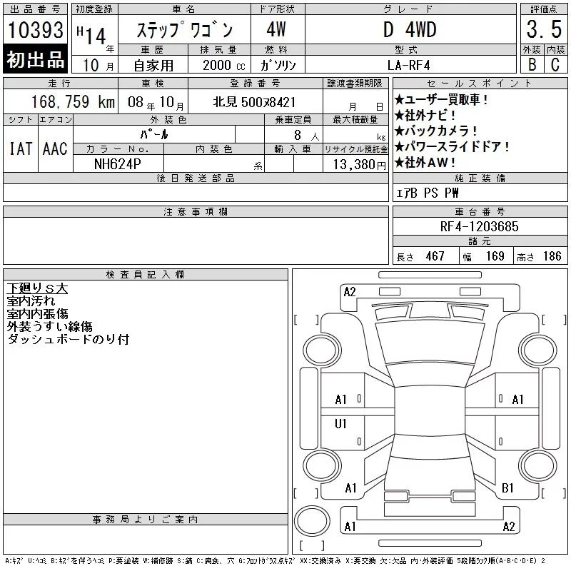 Honda STEP WAGON с аукциона Японии CAA Tokyo лот № 10393