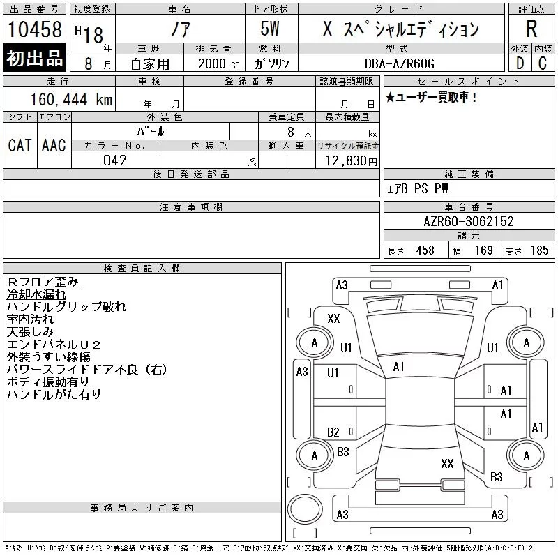 Toyota NOAH с аукциона Японии CAA Tokyo лот № 10458