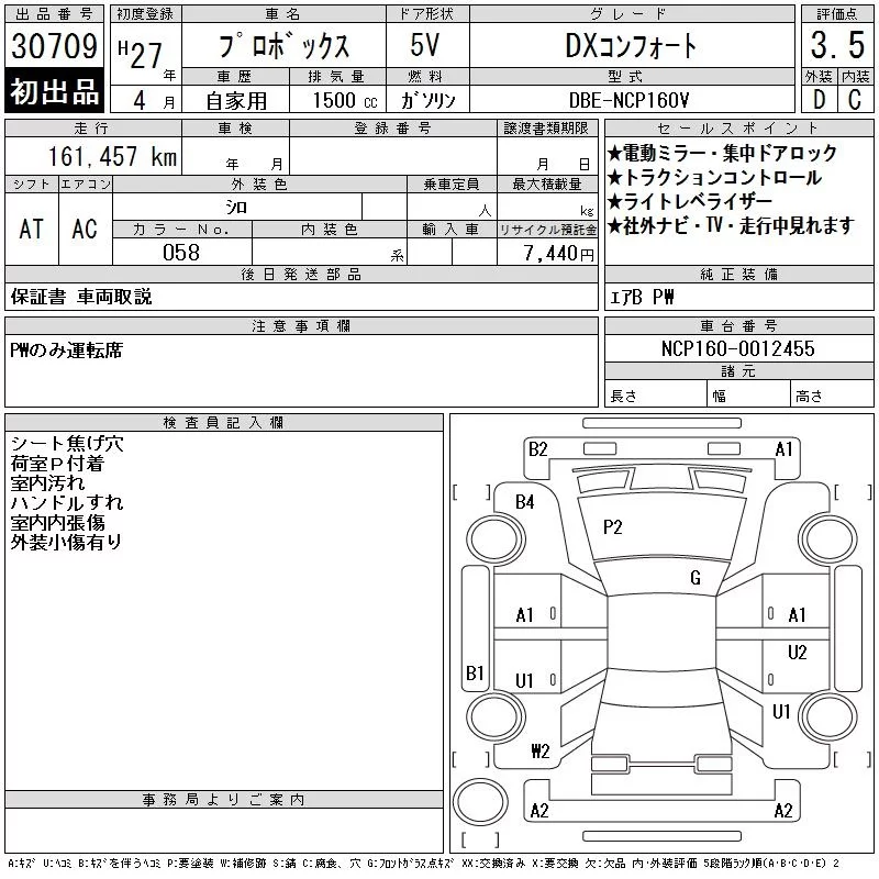 Toyota PROBOX с аукциона Японии CAA Tokyo лот № 30709