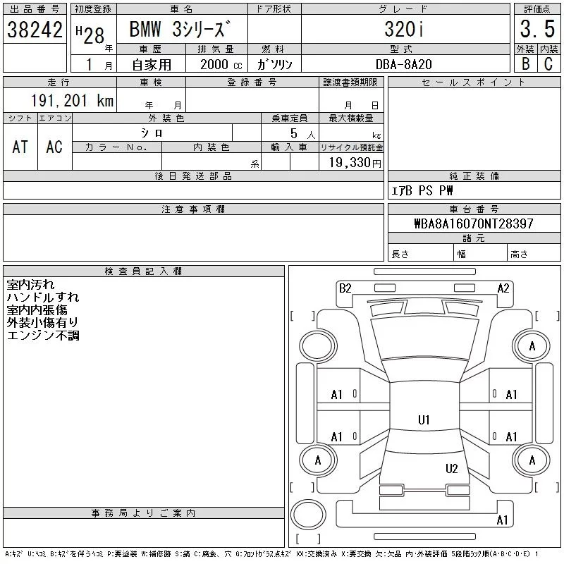 BMW 3-Series с аукциона Японии CAA Tokyo лот № 38242