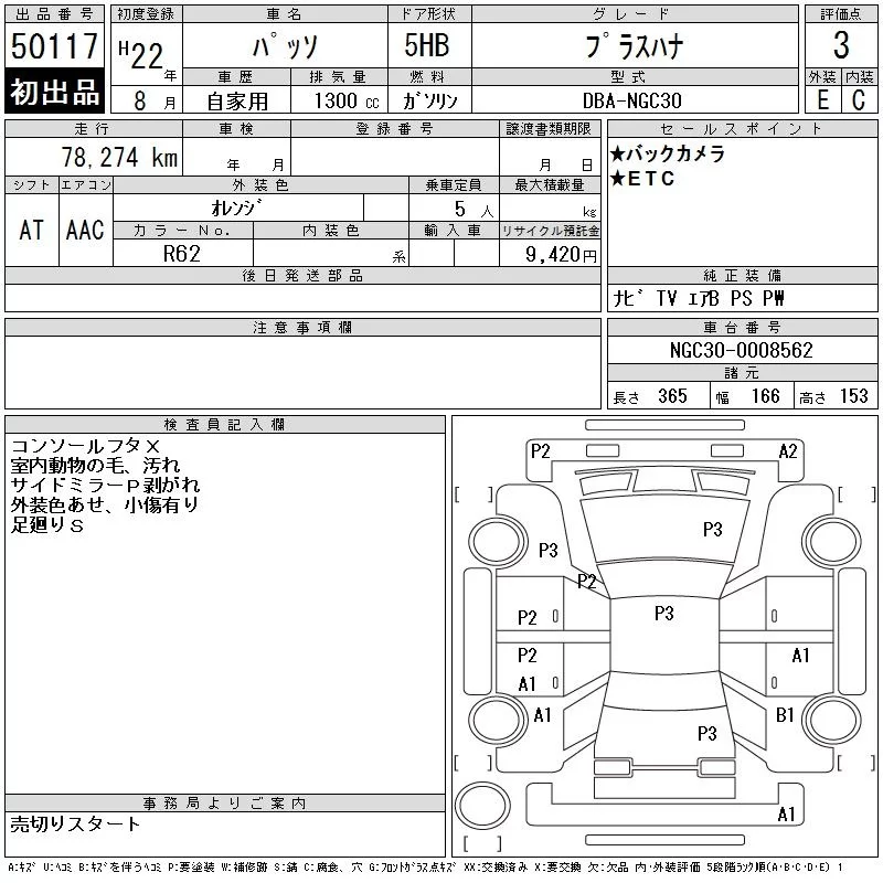 Toyota PASSO с аукциона Японии CAA Tokyo лот № 50117