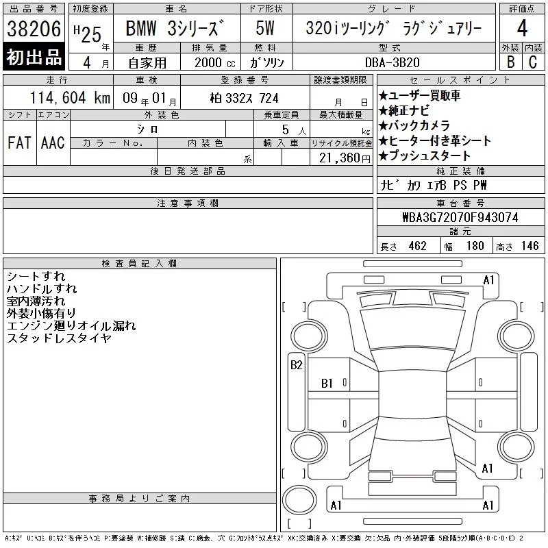 BMW 3-Series с аукциона Японии CAA Tokyo лот № 38206