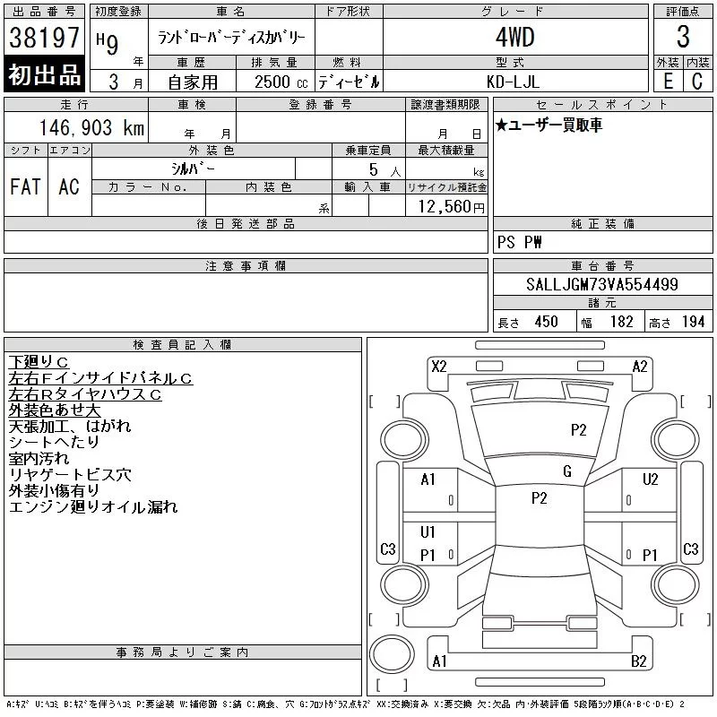 Rover DISCOVERY с аукциона Японии CAA Tokyo лот № 38197