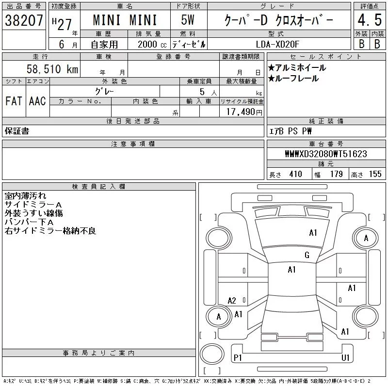 BMW MINI с аукциона Японии CAA Tokyo лот № 38207