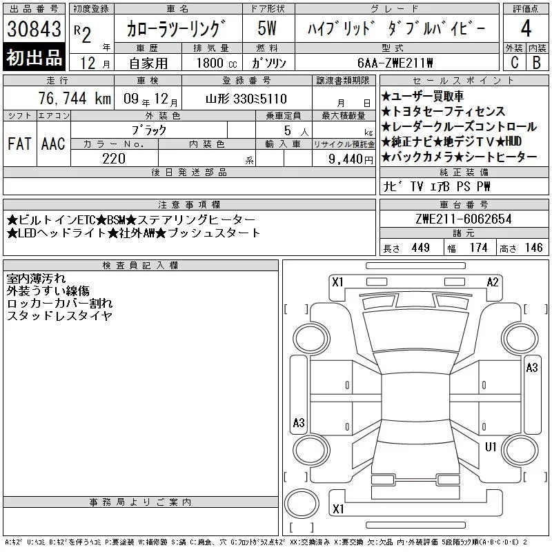 Toyota COROLLA TOURING с аукциона Японии CAA Tokyo лот № 30843