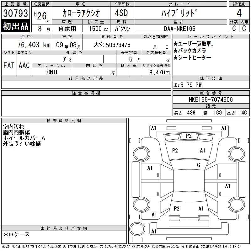 Toyota COROLLA AXIO с аукциона Японии CAA Tokyo лот № 30793