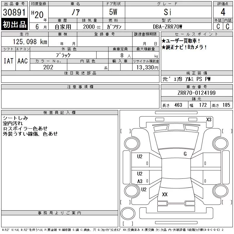 Toyota NOAH с аукциона Японии CAA Tokyo лот № 30891