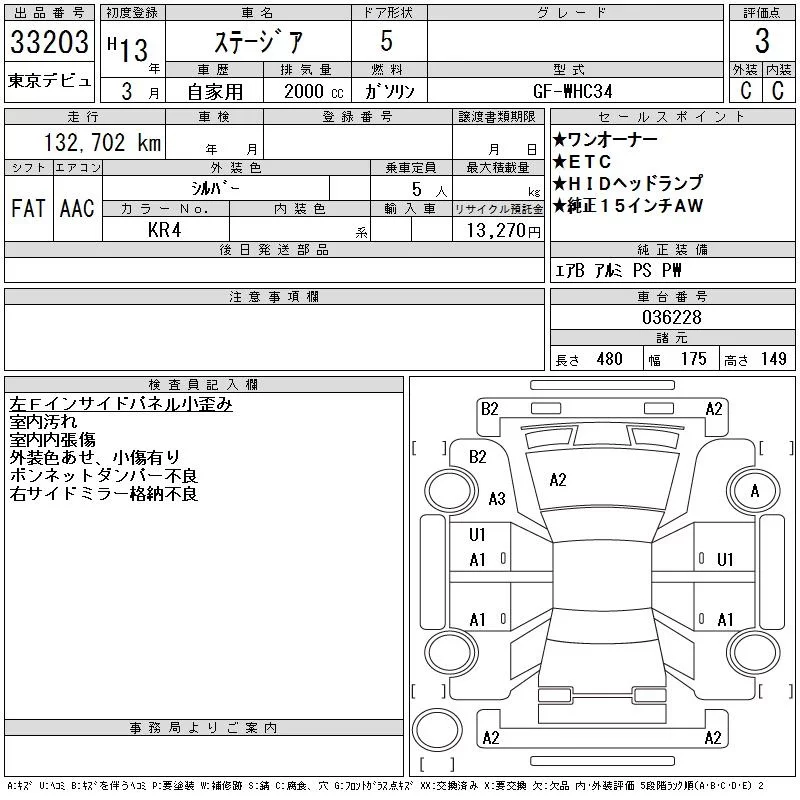 Nissan STAGEA с аукциона Японии CAA Tokyo лот № 33203