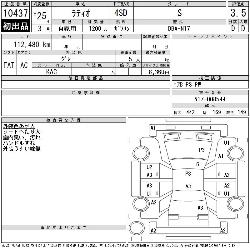 Nissan LATIO с аукциона Японии CAA Tokyo лот № 10437