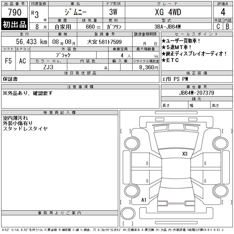 Suzuki JIMNY с аукциона Японии CAA Tokyo лот № 790